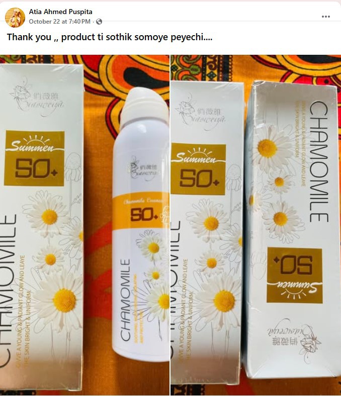 ক্যামোমাইল এক্সট্র্যাক্টে সমৃদ্ধ, যা ত্বককে সূর্যের ক্ষতিকর রশ্মি থেকে রক্ষা করে।