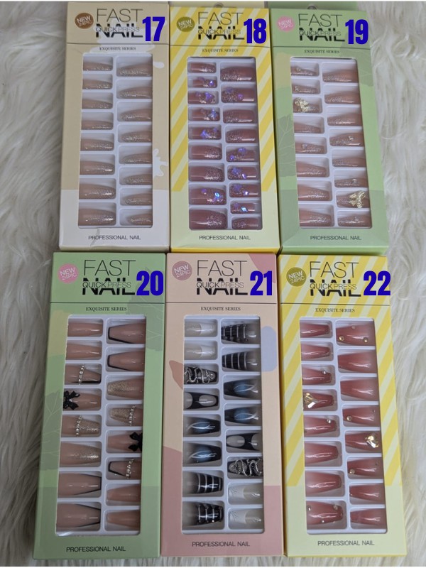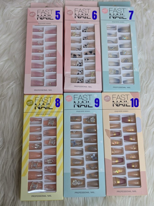 - প্যাকেজে যা থাকে: সাধারণত প্রতিটি প্যাকেজে ২৪টি বিভিন্ন মাপের নখ থাকে, যাতে সব আঙুলের সাথে মানানসই হয়।
