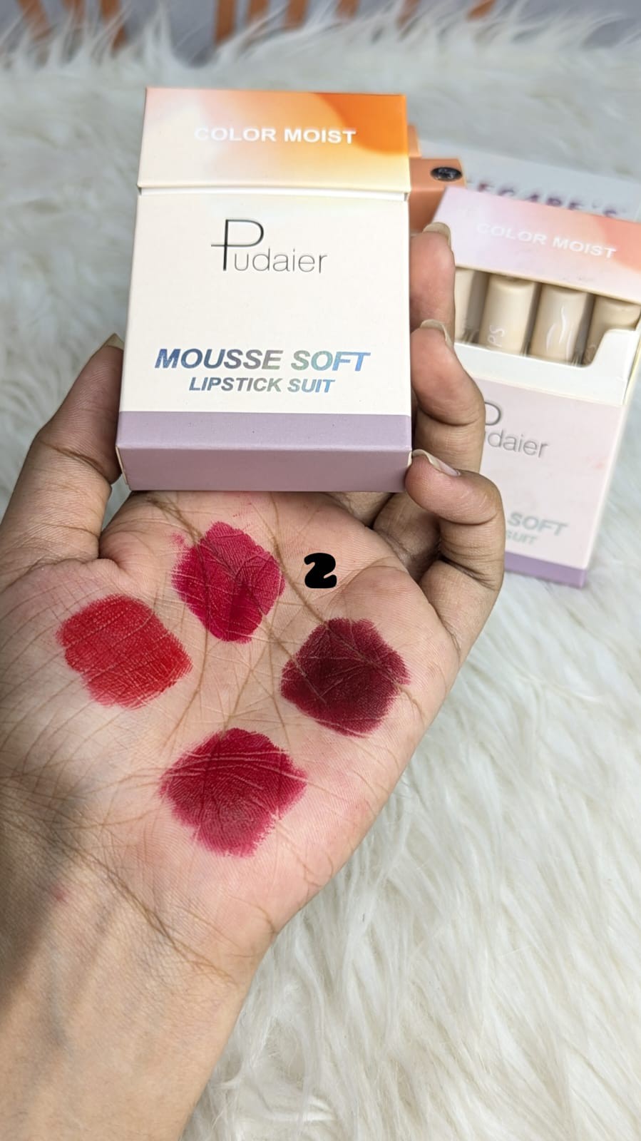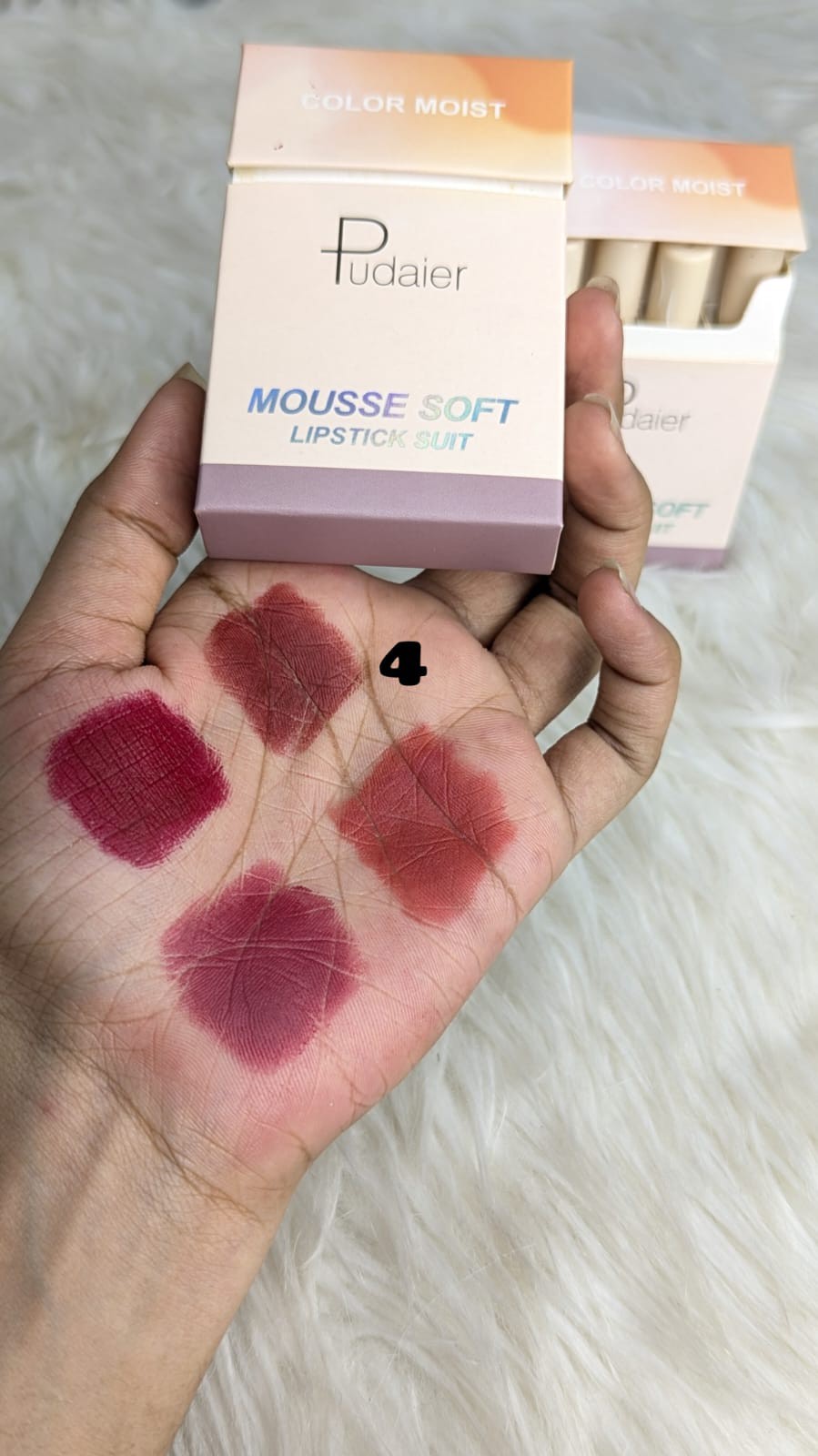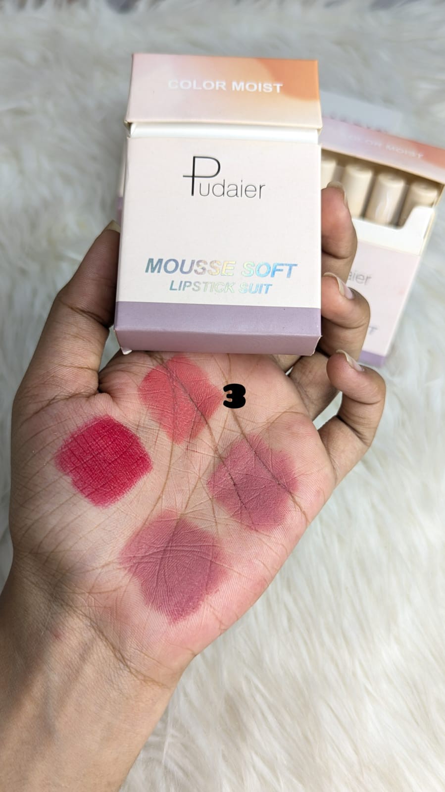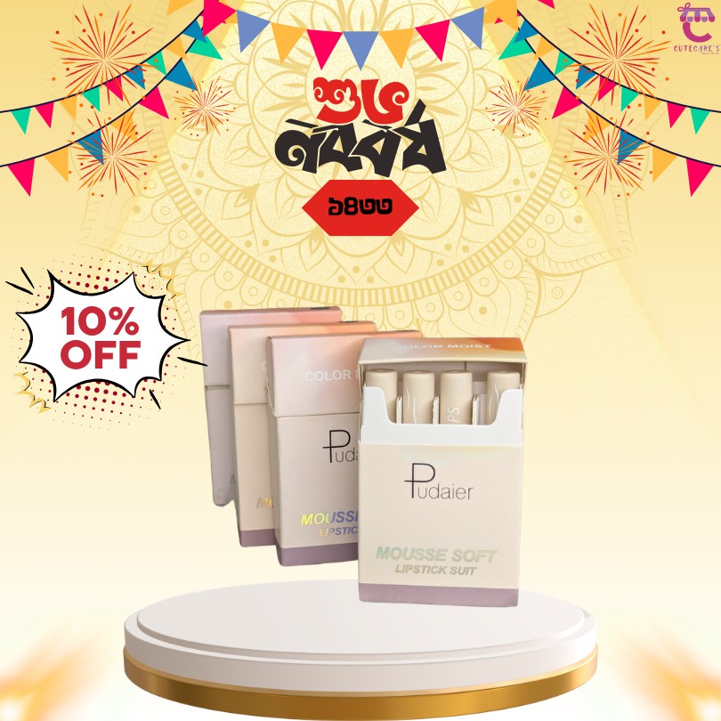 Pudaier Mousse Soft Lipstick Suit Set ঠোঁটে দেয় আল্ট্রা-সফট, হালকা ও ভেলভেটি ফিনিশ। মুস টেক্সচারের এই লিপস্টিকগুলো সহজে গ্লাইড করে, ঠোঁট শুকিয়ে না গিয়ে দেয় স্মুথ ও লং লাস্টিং কালার। ডেইলি ইউজ থেকে পার্টি লুক—সবকিছুর জন্য পারফেক্ট।