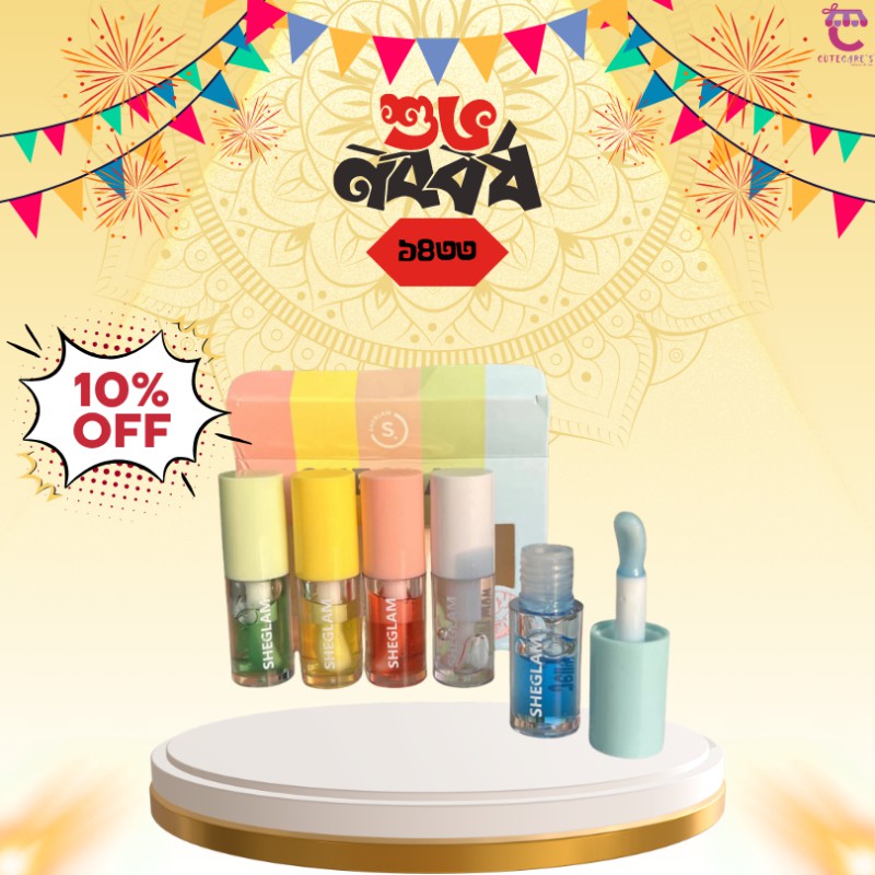 📦 সেট: ৫টি ভিন্ন শেড – চকচকে ও হাইড্রেটিং লিপ গ্লস